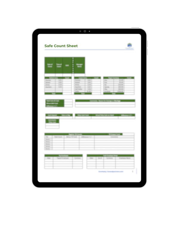 Cash losses rarely happen all at once—they accumulate when controls are inconsistent. The Safe Count Sheet gives leadership teams a clear, repeatable system to count and reconcile everything stored in the safe at the beginning and end of each shift, creating visibility and accountability where it matters most.